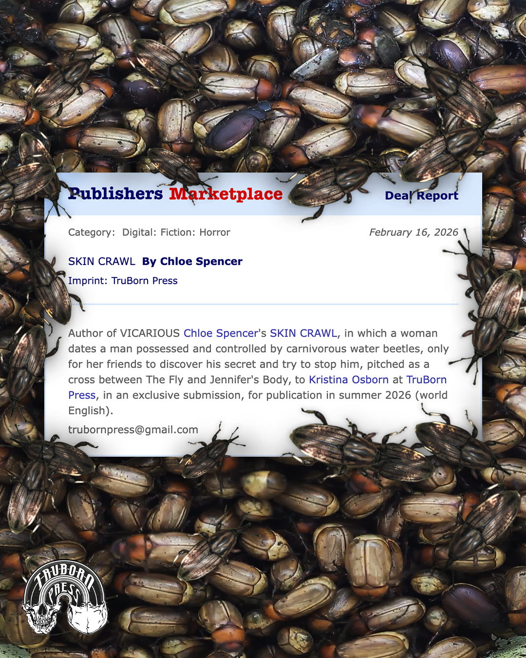 Hello everyone! Wanted to jump on here really quick and announce that I’ve signed with Truborn Press for the upcoming release of Skin Crawl, an extreme horror/bug horror novella! This is one of the grossest projects I’ve ever worked on. If you’re into toxic relationships, unusual possession stories, and creepy crawlies, this one’s for you.