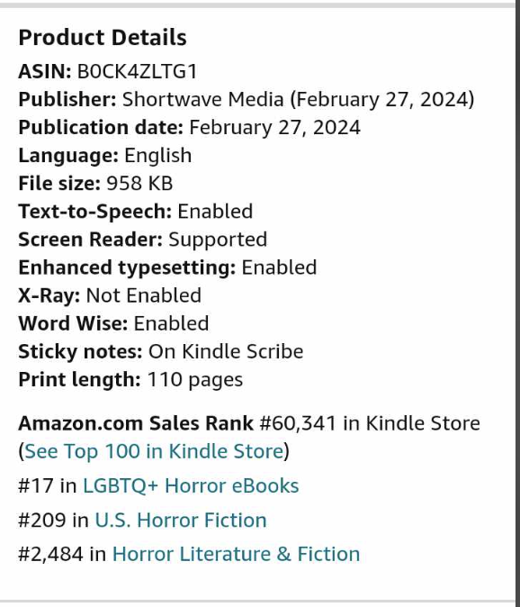 It’s also #3 on the New Releases List for LGBTQ+ Horror eBooks!