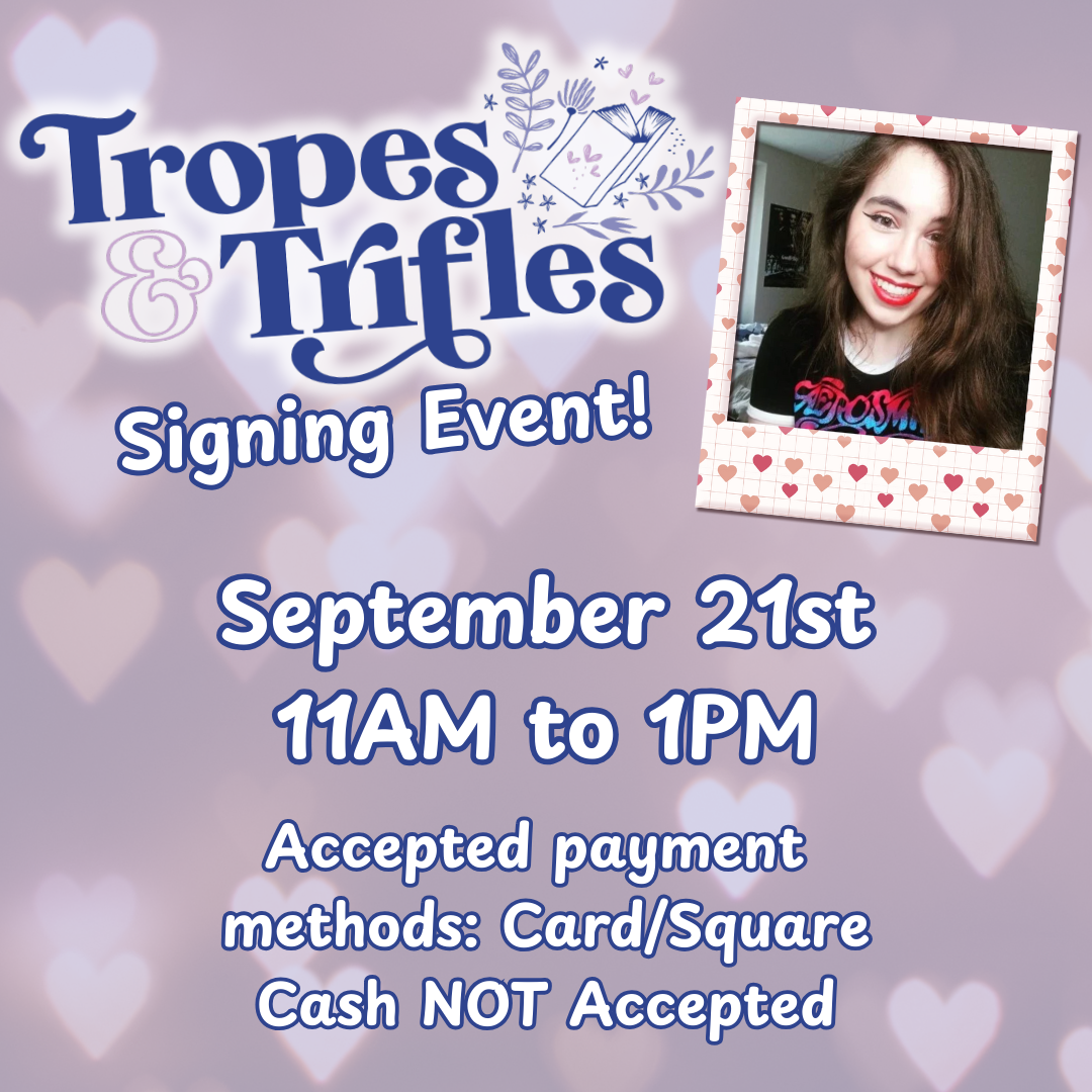 Hey folks! I’m super excited to announce that I’ll be at Tropes and Trifles, Minneapolis’ first and only romance bookstore, on Sunday, September 21st from 11AM to 1PM CT.